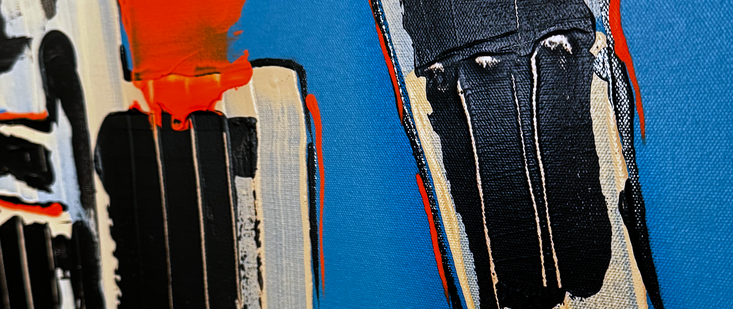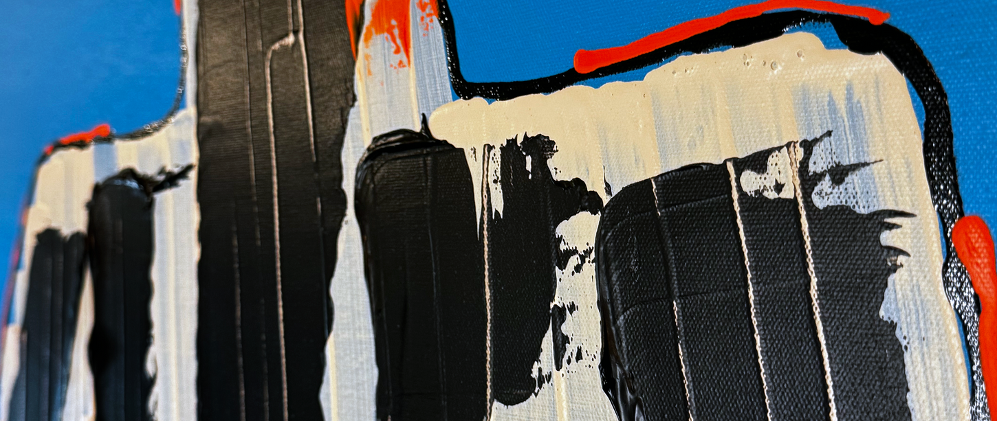 The inspiration for Denver came from reflecting on the immense power our words hold. Like a gun, words can kill, defend, and navigate us through life's challenges. The colors of this piece reflect the ideals of America, where thoughts are deeply connected with emotions and spoken words. When these elements are aligned, they create a powerful force; when disconnected, they can wreak havoc and destroy lives.